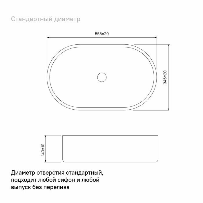 | Дополнительная информация | Комплектация | Раковина - 1 шт. , Инструкция - 1 шт.;Возможное основание под раковину | столешница;Гарантия | 10 лет;Расстояние от смесителя до слива, см | 22,25;Страна | Россия;Ширина, см | 55,5; |
