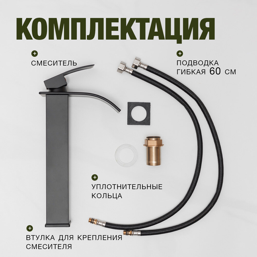 | Комплектация | Корпус смесителя (кран) - 1шт. Подводки для воды - 2 шт. Крепления- 1 уп. |