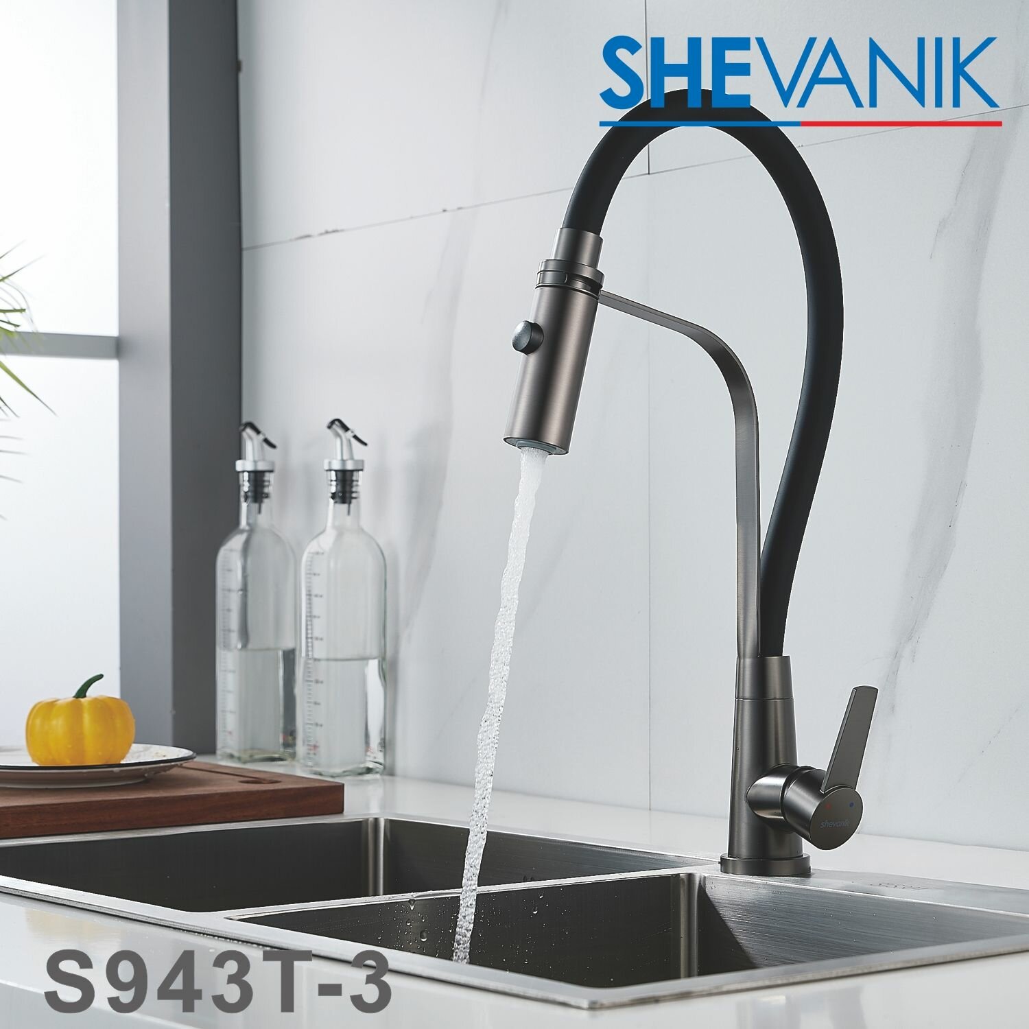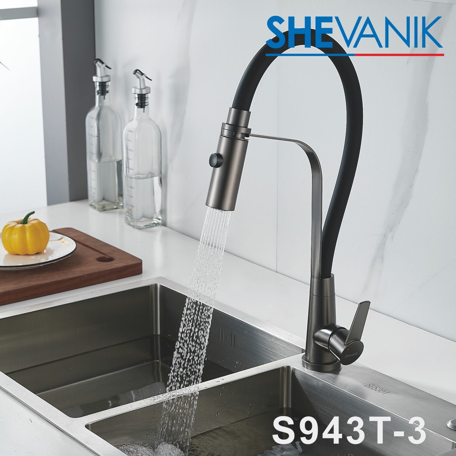 Смеситель для кухни с гибким изливом Shevanik S943H-3 черный