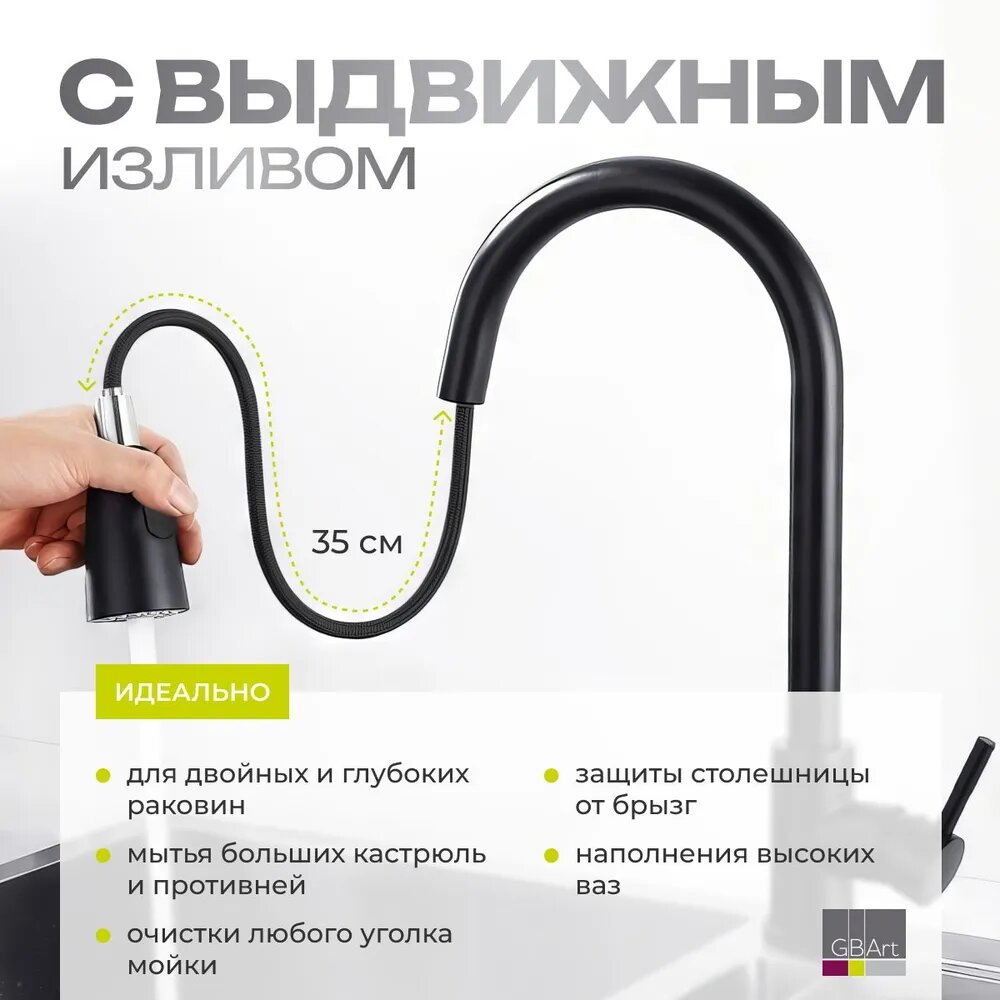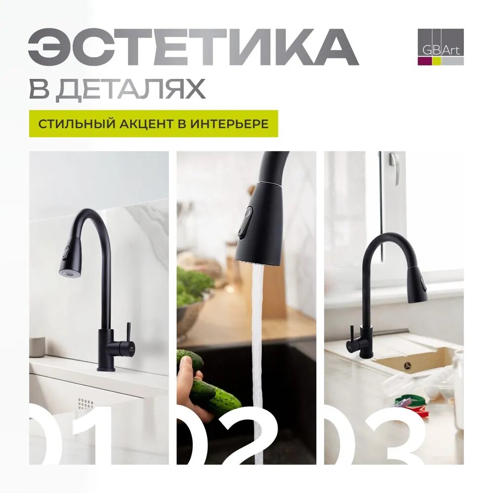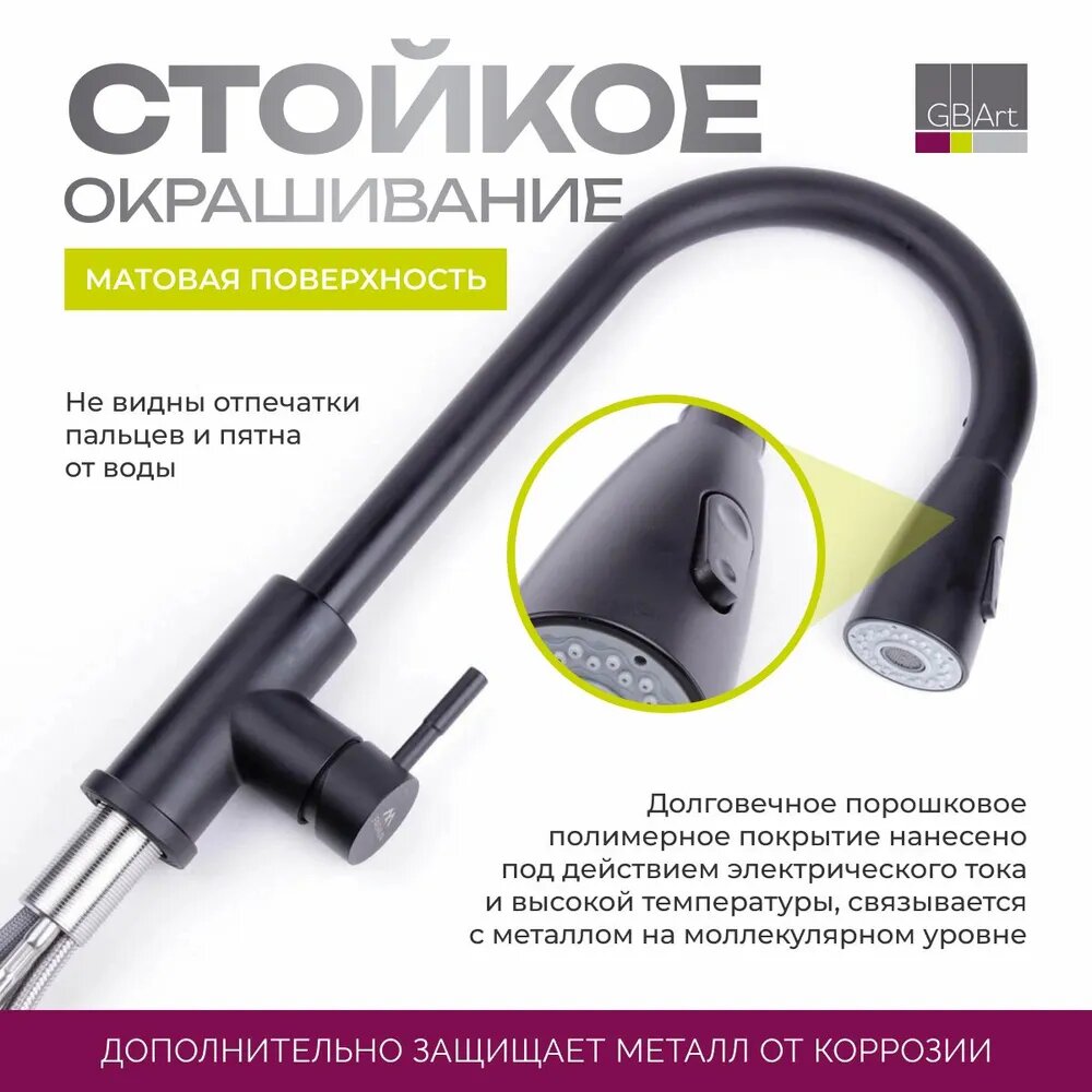 Смеситель для кухничерный с вытяжной лейкой, кран на кухню FASHUN A56109-7 интересное: