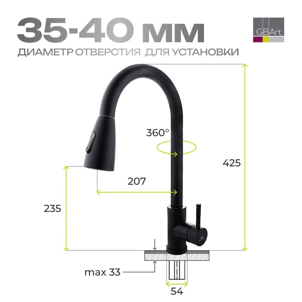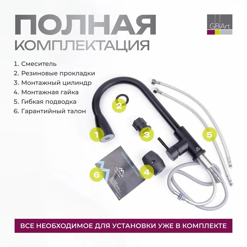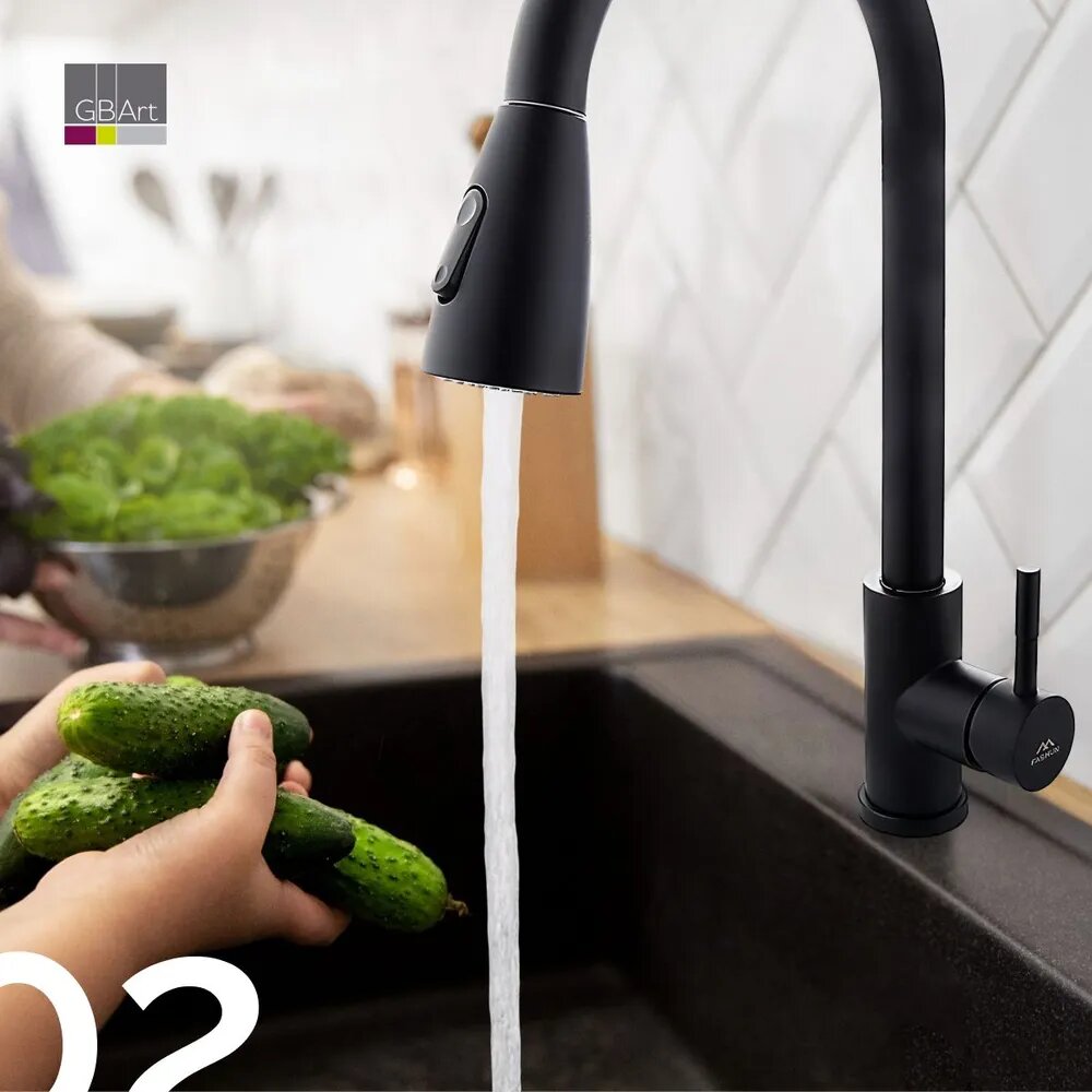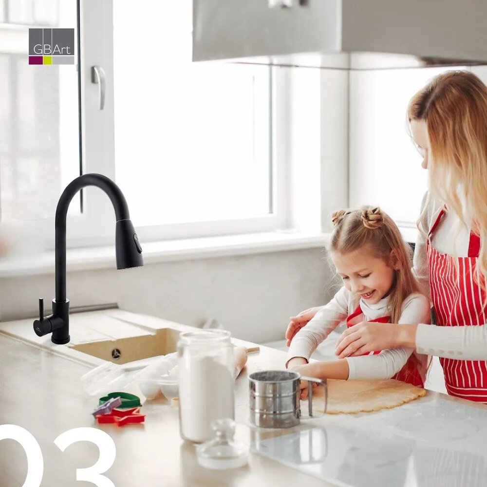 Смеситель для кухничерный с вытяжной лейкой, кран на кухню FASHUN A56109-7 интересное: