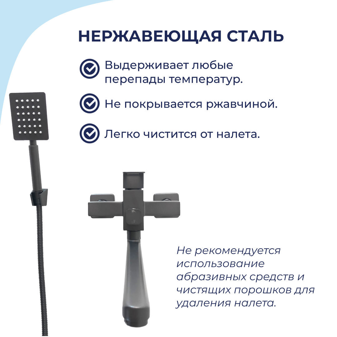 Смеситель для ванны и душа с длинным изливом графит / Нержавеющая сталь / Графитовый интересное: