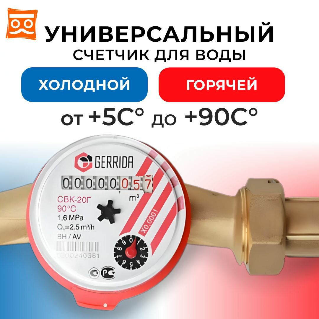 Счетчик для воды универсальный крыльчатый Gerrida СВК-20Г 3/4", 130 мм с Монтажным Комплектом / Поверка Не старше 35 дней интересное: