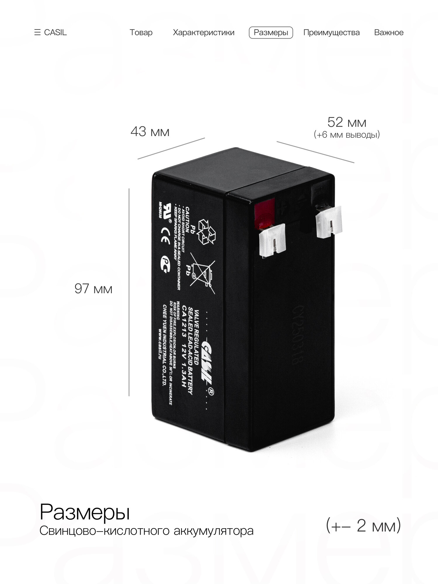 Свинцово-кислотный аккумулятор CASIL CA1213 (12 В, 1.3 Ач) для системы охранно-пожарных сигнализаций интересное: