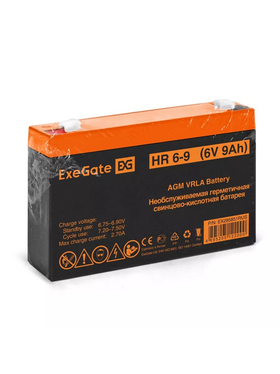 Аккумуляторная батарея Exegate HR 6-9 (6V 9Ah 634W, клеммы F1) Ex285851rus .