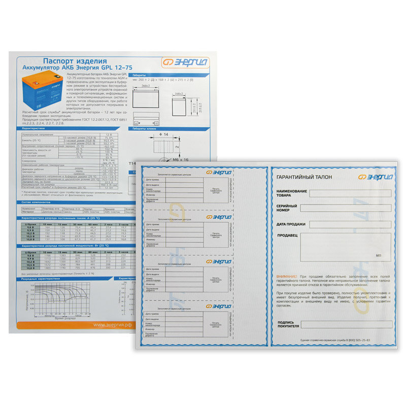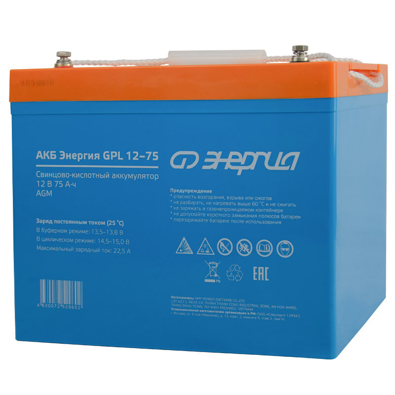 Аккумулятор для ИБП Энергия АКБ 12-75 GPL S (тип AGM)