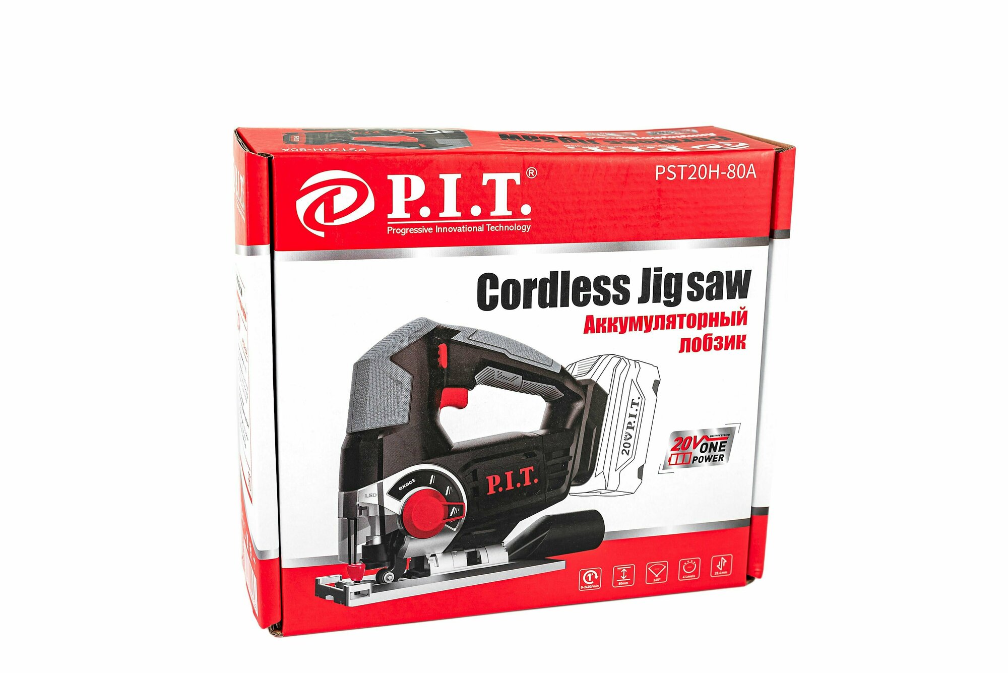 Лобзик аккумуляторный P.I.T. OnePower PST20H-80A SOLO (без АКБ и ЗУ) 20В, пропил 80мм, 2400 об/мин, БЗП