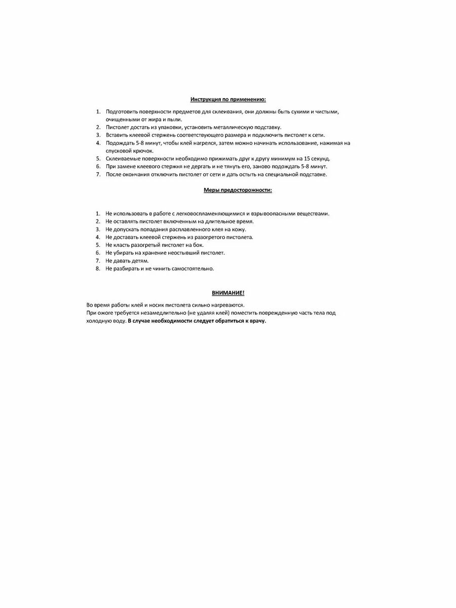 | Диаметр клеевого стержня | 7 мм |