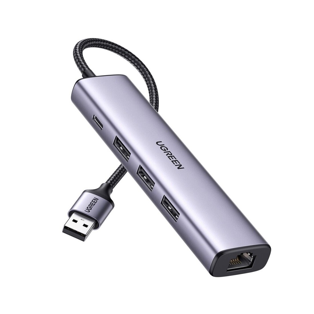Адаптер UGREEN CM475 (60554) USB3.0 to 3USB3.0 +RJ45 (1000M) Ethernet Adapter Type-C Power Supply. Цвет: серый.