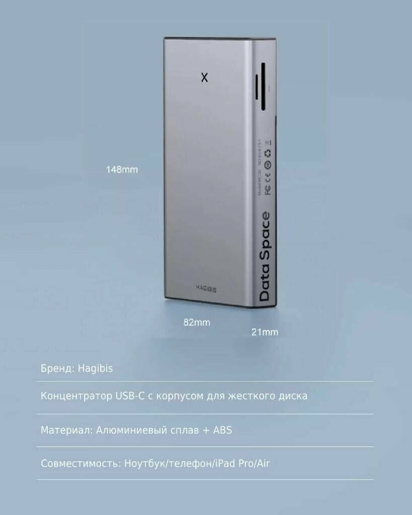 USB- хаб, USB - концентратор Hagibis USB-C с внешним корпусом для HDD/SSD 2.5", TF/SD, USB 3.0, HDMI (MC30 PRO) интересное: