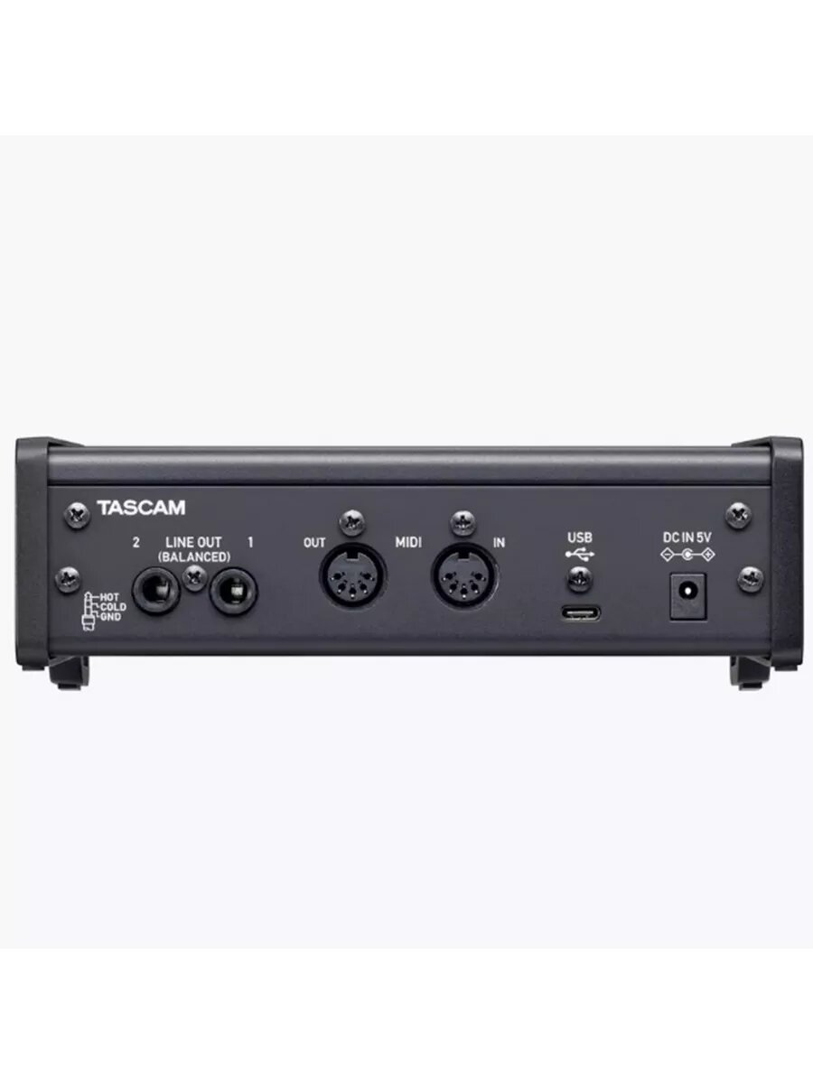 Tascam US-2x2HR USB аудио интерфейс, 24 бит/192 кГц, 2x Combo XLR/TRS микр./лин./инстр. входа, питание +48 В, 2х 1/4" TRS лин. выхода, 1/4" стерео выход на наушники, USB 2.0 Type-C (питание), MIDI In/Out, разъем DC 5V, совместимость Win/MacOS X