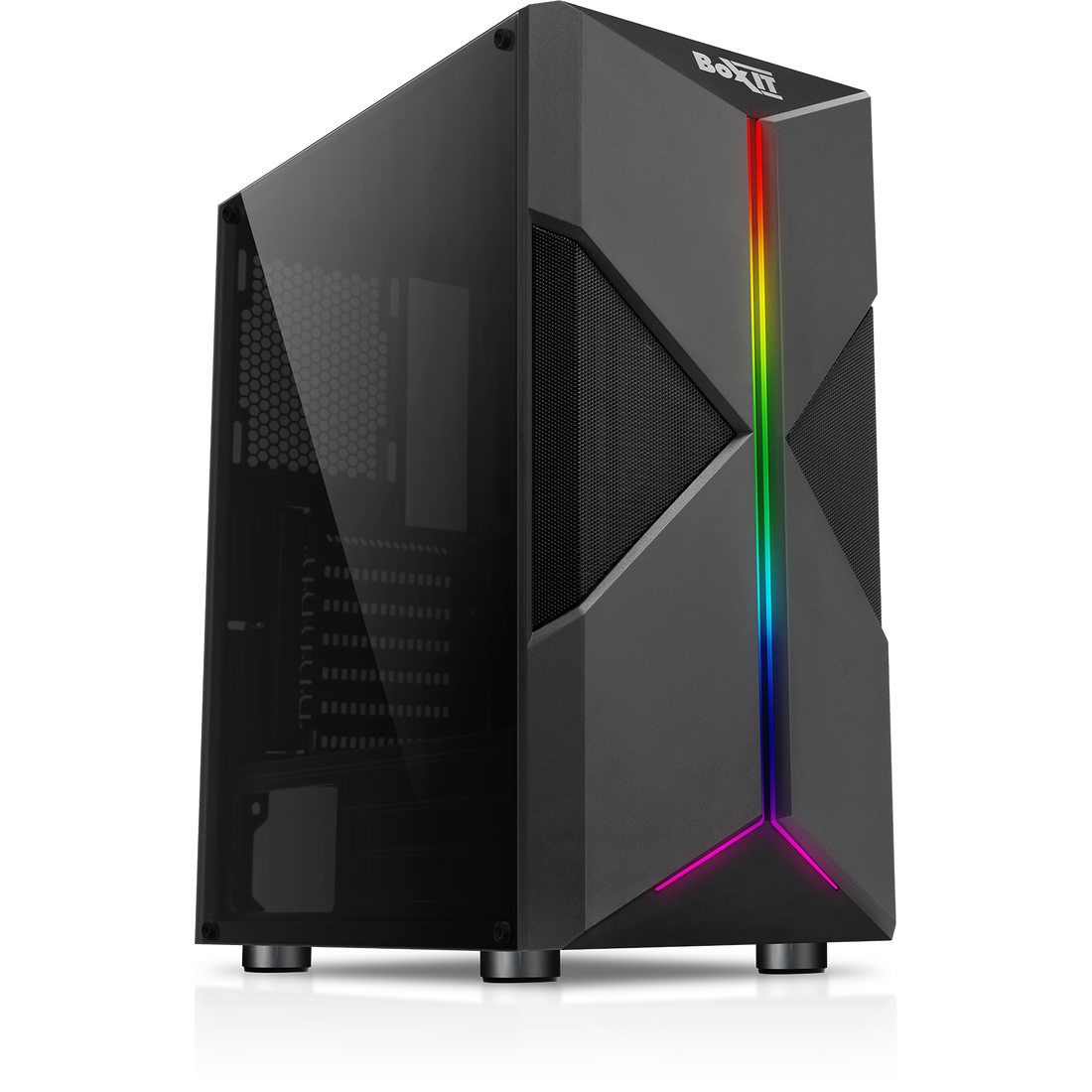 Корпус BoxIT 4709BB Midi-Tower, черный форм-фактор: ATX, материал корпуса: Сталь, боковое окно пластик, USB 2.0, USB 3.0, мини-Джек 3.5 интересное: