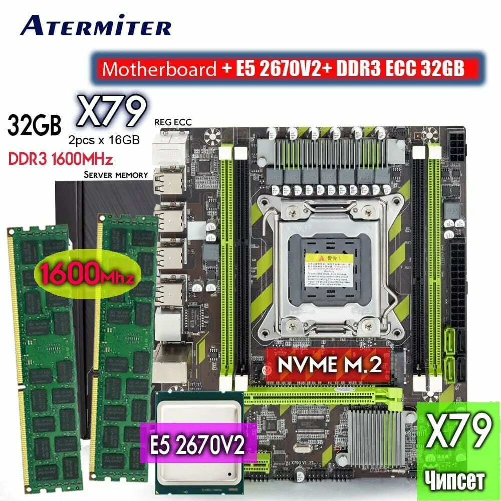 Купить Материнская плата X79, процессор Xeon E5 2650v2. память 2X16 ГБ DDR3 1600 МГц