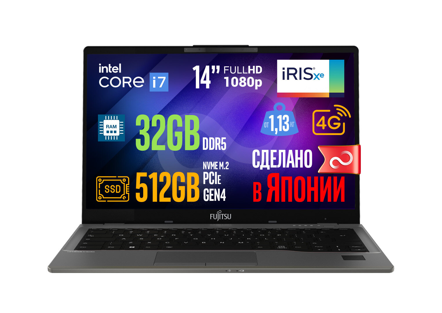 СохранитьНоутбук Fujitsu LIFEBOOK U7412 4G-LTE Warm Silver, 14” Full HD IPS, Intel Core i7-1255U, 32GB DDR4-3200MHz, SSD 512GB PCIe GEN4, Intel Iris Xe Graphics, WINDOWS 11 PRO, клавиатура RU/US, гарантия 1 год, сделано в Японии интересное: