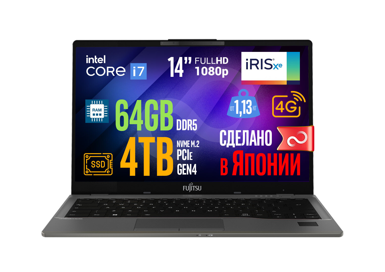 СохранитьНоутбук Fujitsu LIFEBOOK U7412 4G-LTE Warm Silver, 14” Full HD IPS, Intel Core i7-1255U, 64GB DDR4-3200MHz, SSD 4TB PCIe GEN4, Intel Iris Xe Graphics, WINDOWS 11 PRO, клавиатура RU/US, гарантия 1 год, сделано в Японии интересное: