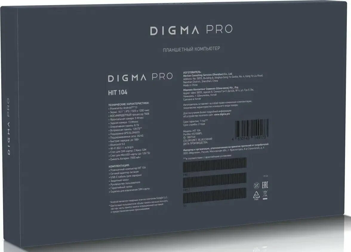 Купить 10.1" Планшет DIGMA PRO HIT 104 8/256 GB T616 4G, 1920 x 1200, Android 13, синий [hs1009pl]