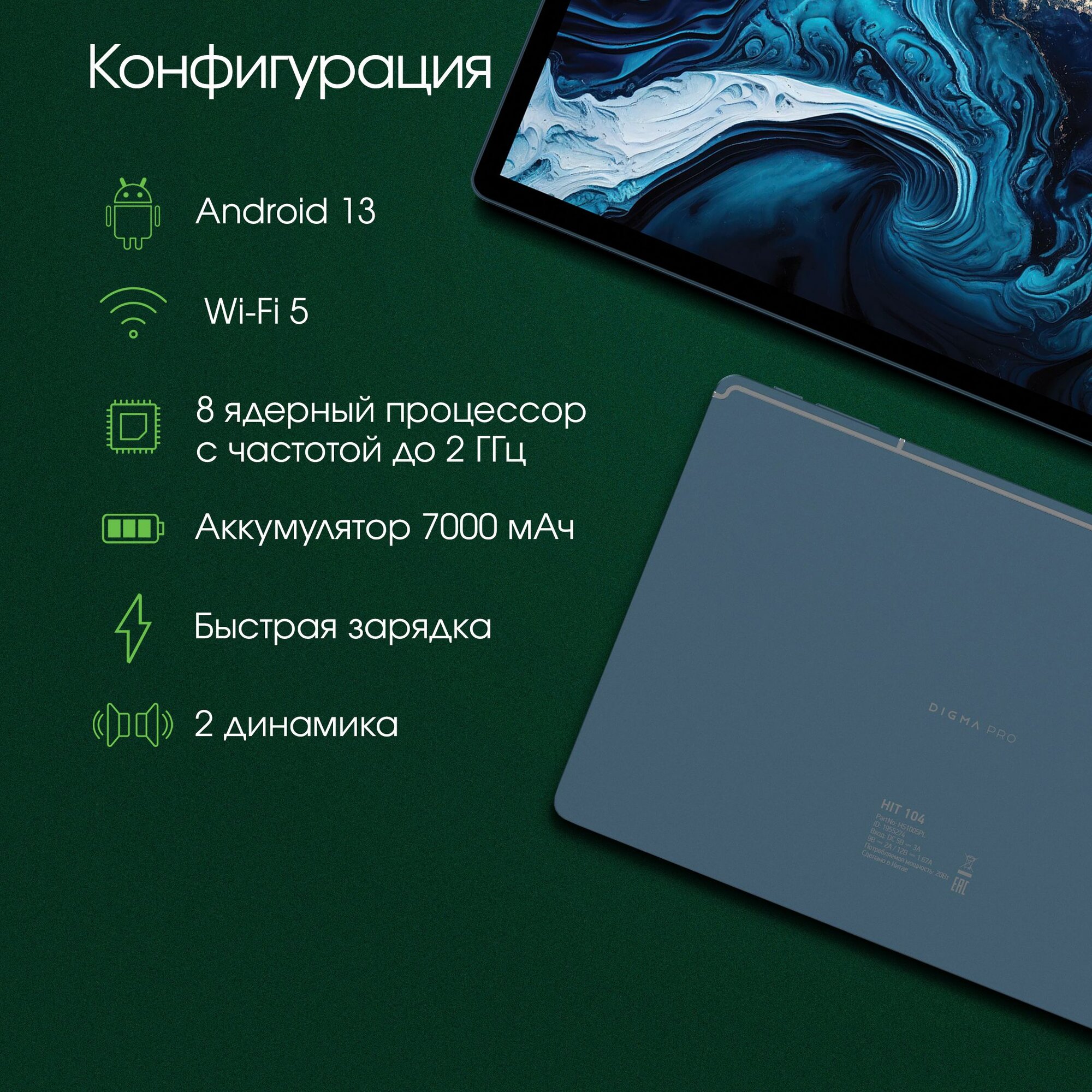 10.1" Планшет DIGMA PRO HIT 104 8/128 GB T606 4G, 1920 x 1200, Android 13, синий [hs1005pl]