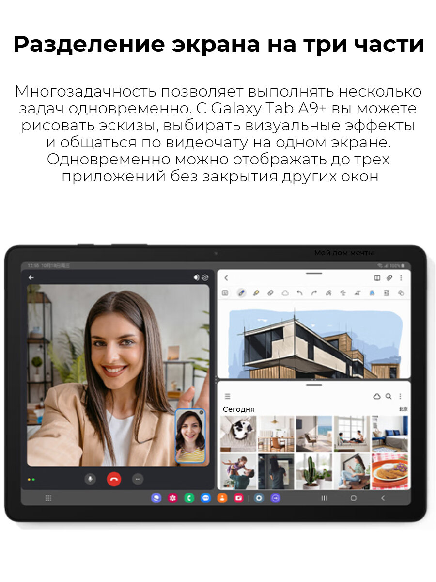 Samsung Планшет Galaxy Tab A9+ (SM-X210) Wi-Fi, 11", 128GB, серебристый, CN интересное: