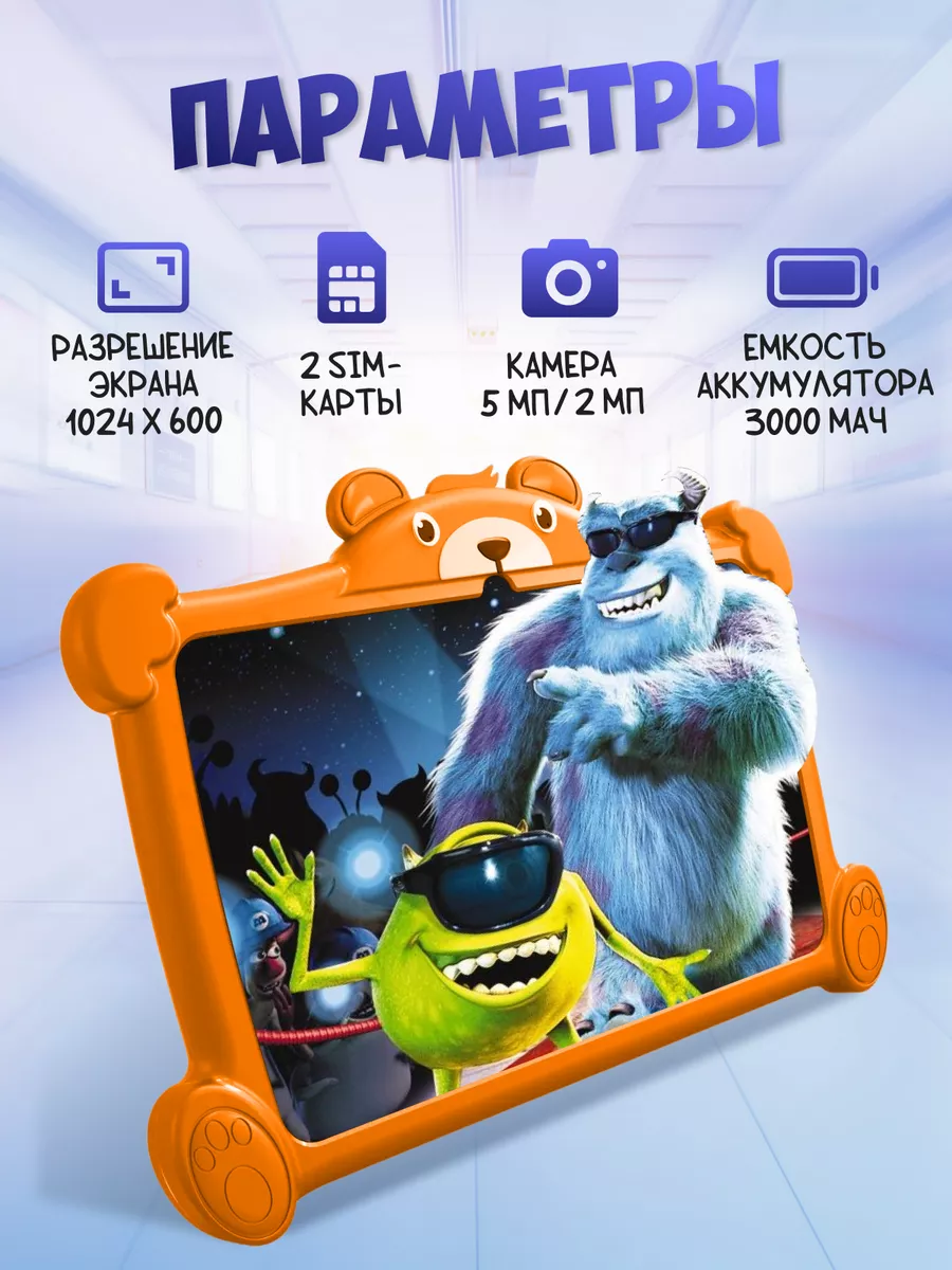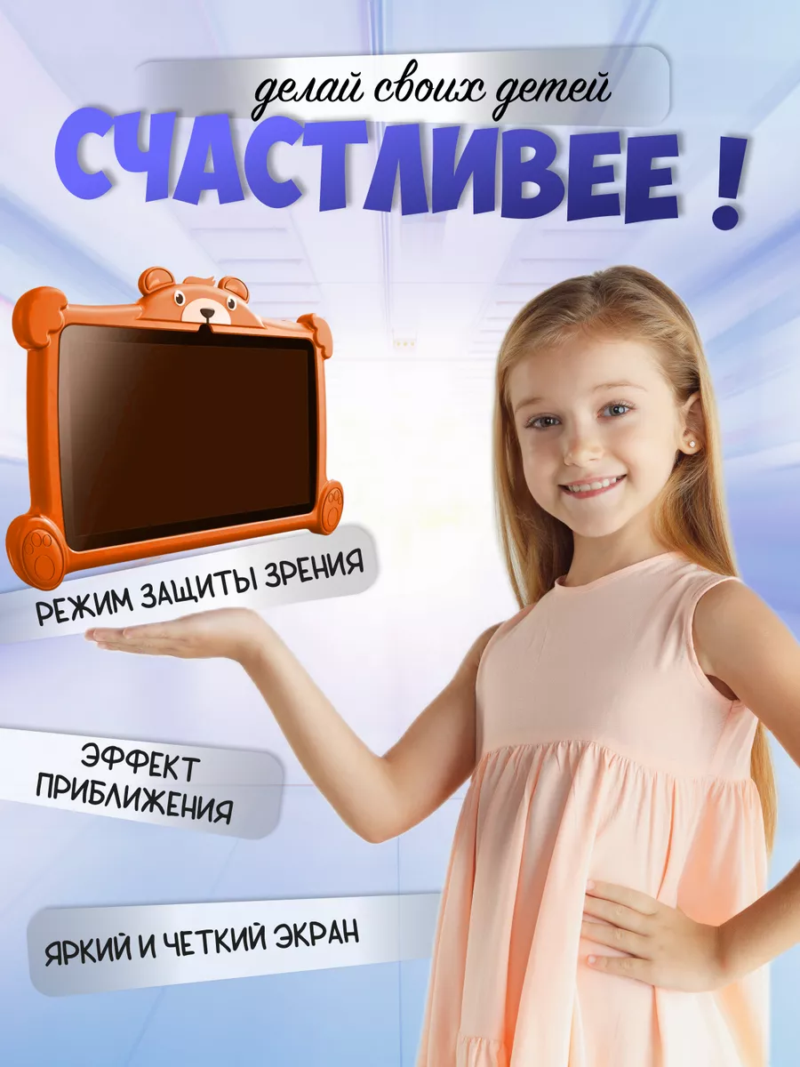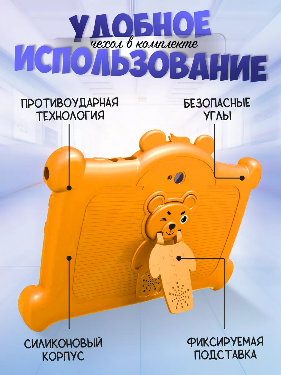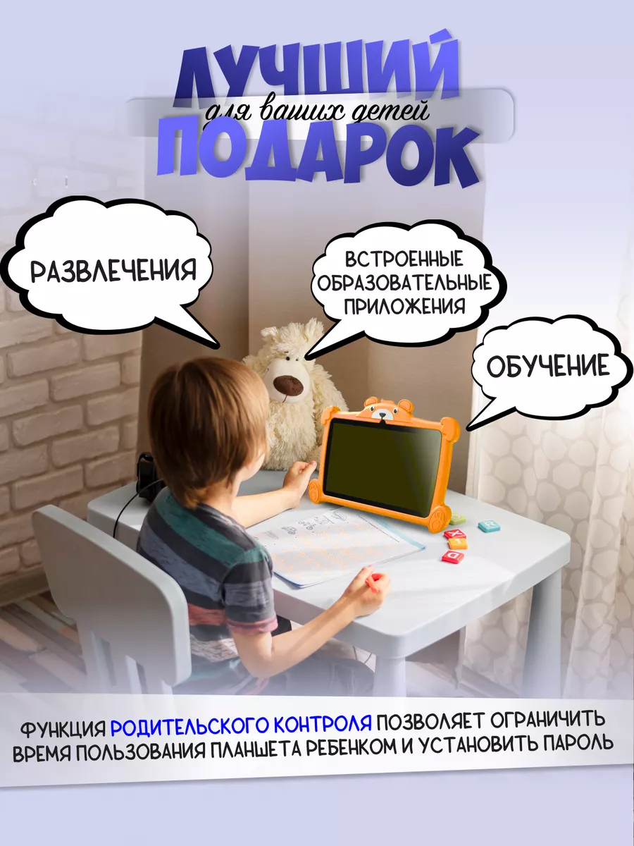Планшет Детский с родительским контролем, 4+64ГБ, Android 11.0, Оранжевый интересное: