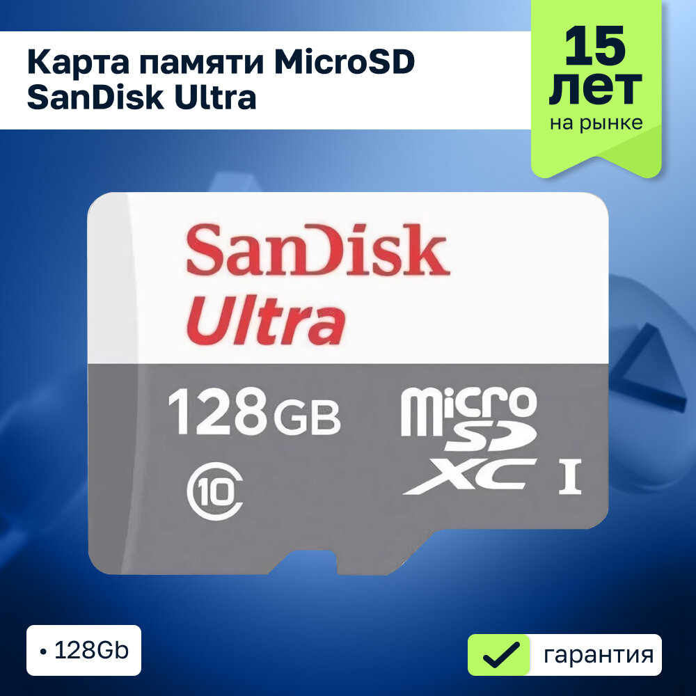 128GB Карта памяти MicroSD SANDISK Class 10 Ultra UHS-I (100 Mb/s) без адаптера (SDSQUNR-128G-GN3MN)