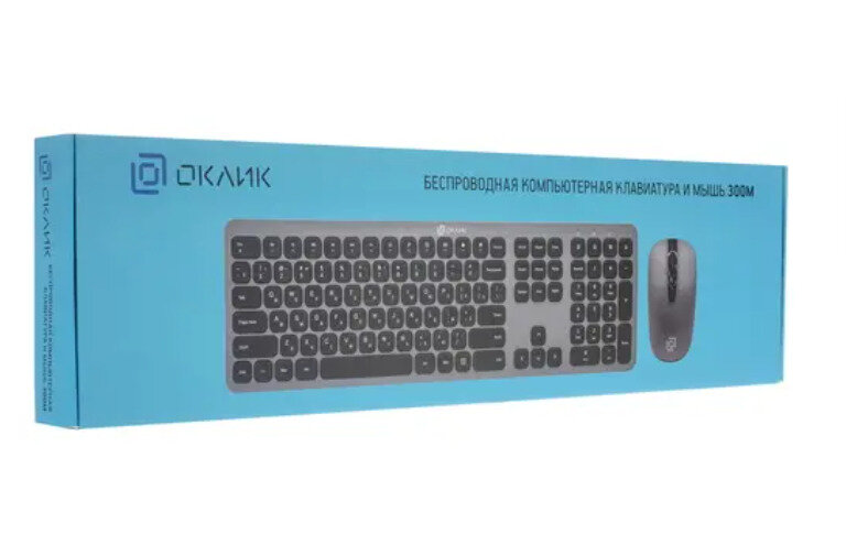 Комплект (клавиатура+мышь) Oklick 300M, USB, беспроводной, серый/черный [1488402]