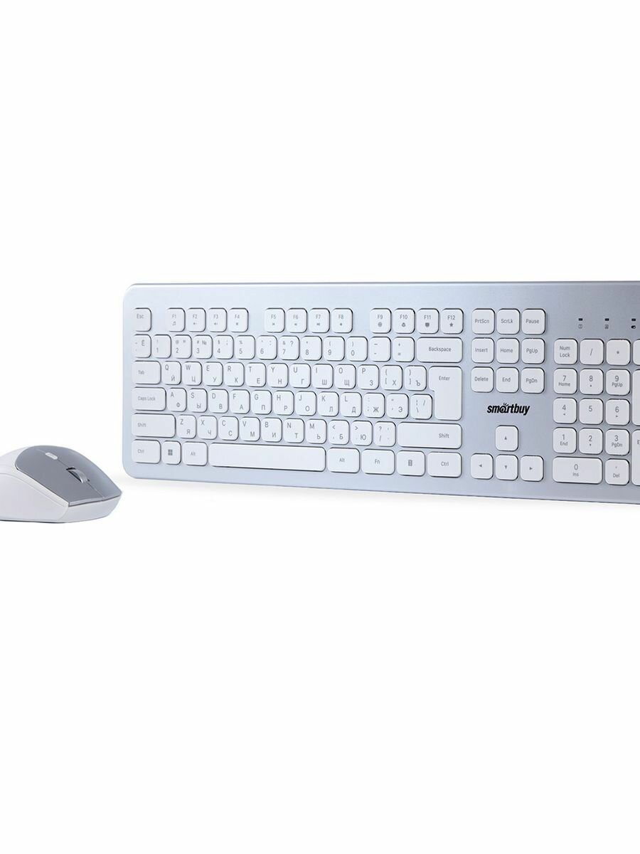 Комплект клавиатура + мышь SmartBuy 233616AG-SW, беспроводной, с нано-приемником, 2400 DPI, серебристый интересное: