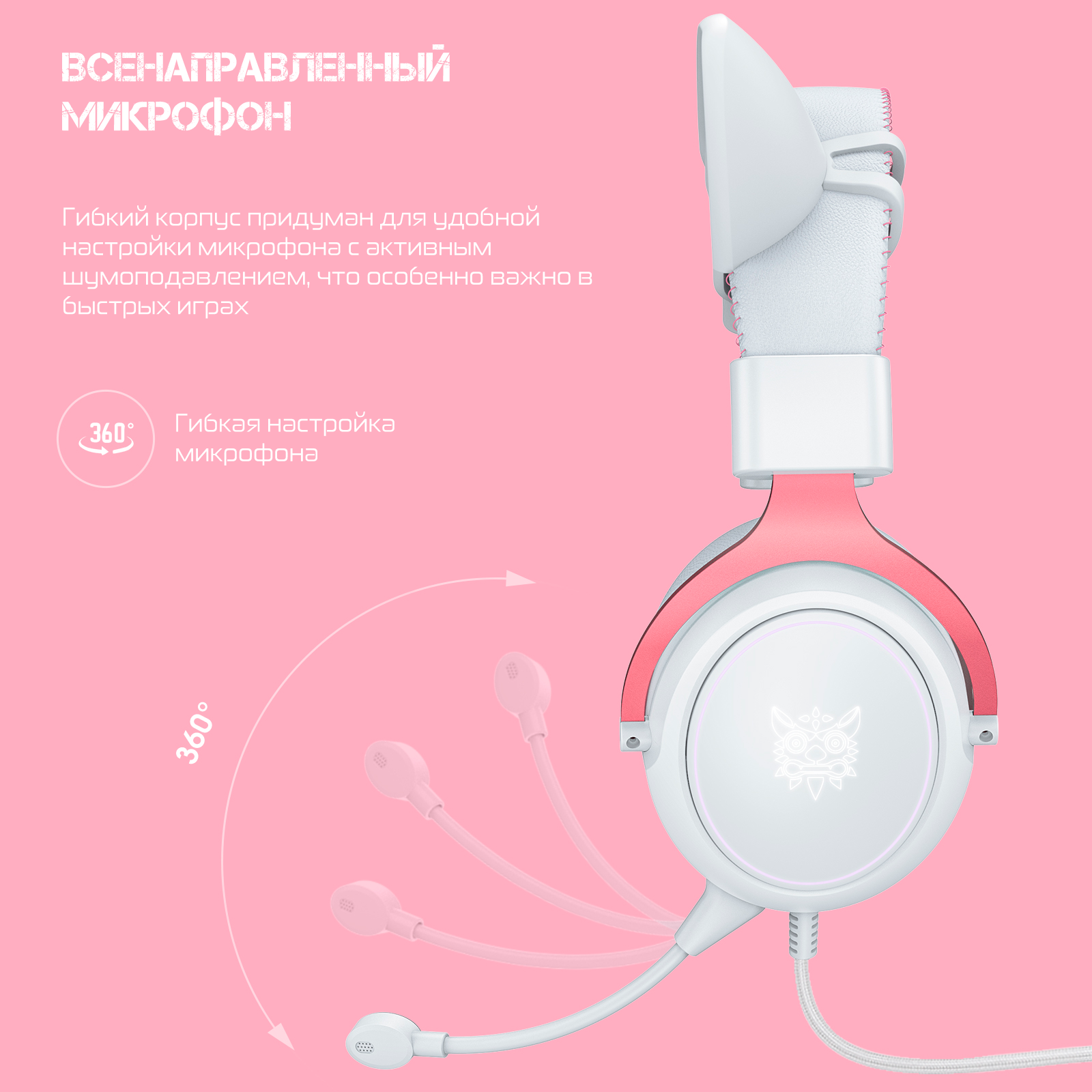 Игровые наушники ONIKUMA X15 pro Pink Star розовые с кошачьими ушками и подсветкой