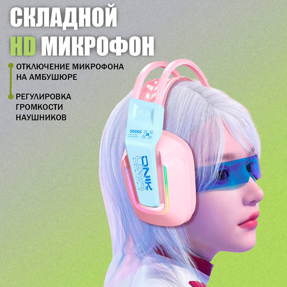 Игровые наушники ONIKUMA X15 pro Pink Star розовые с кошачьими ушками и подсветкой