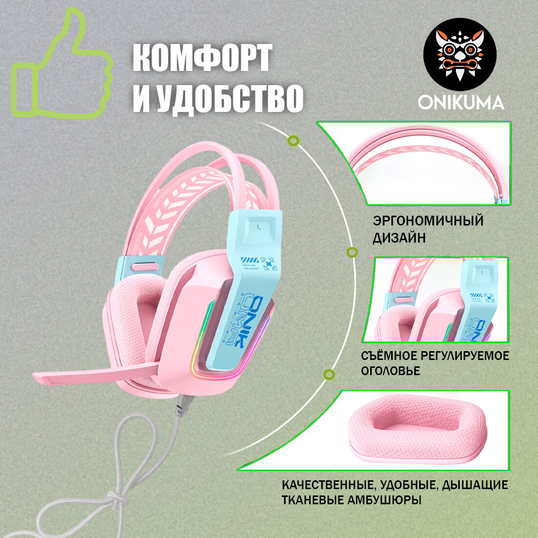 Купить Игровые проводные наушники Onikuma X13, розовый, 3.5 мм, подсветка
