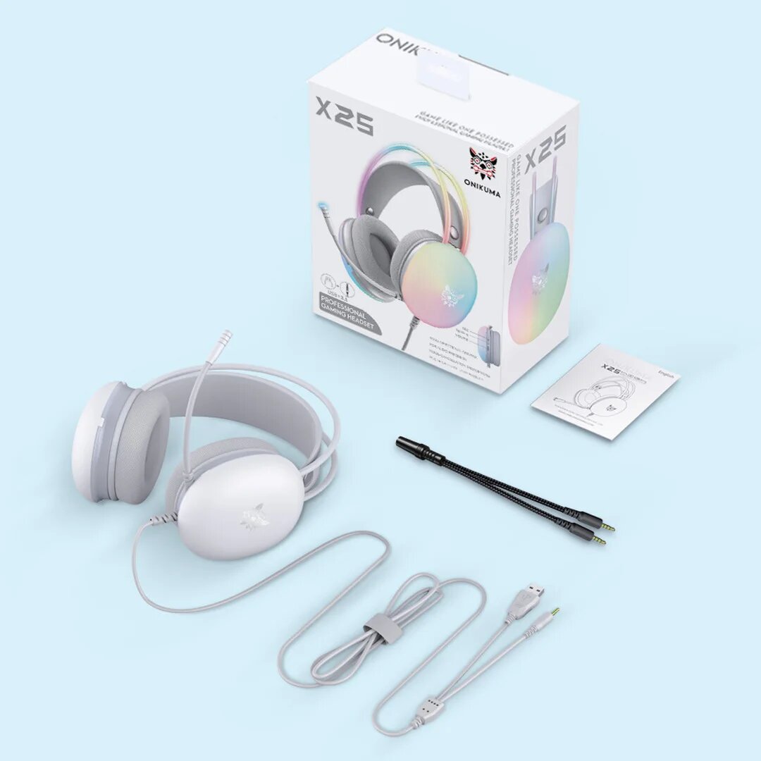 Проводная игровая гарнитура Onikuma X25 RGB с микрофоном HD, White