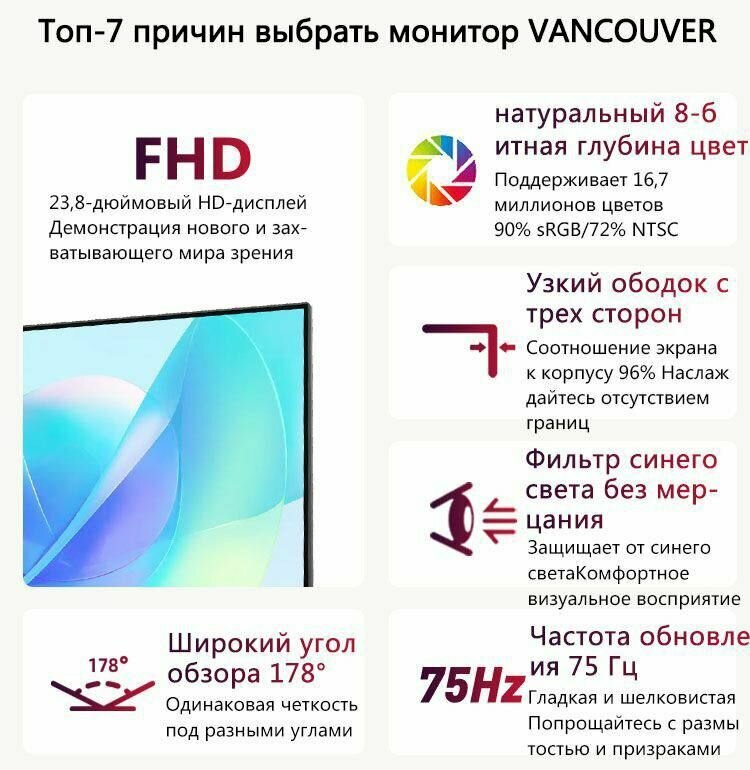 Монитор 24‘’ SJ-X99 75 Гц для компьютера dHP, 1920*1080, HD интересное: