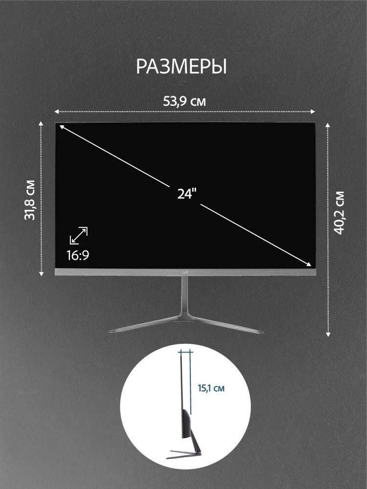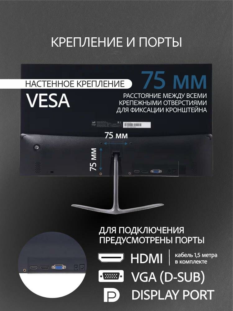 Монитор 24" LEFF 24FV100 (VA,7 мс,75Гц,1920x1080,16:9,250кд/м,3000:1,170°/170°, VGA, HDMI, DP) Black интересное: