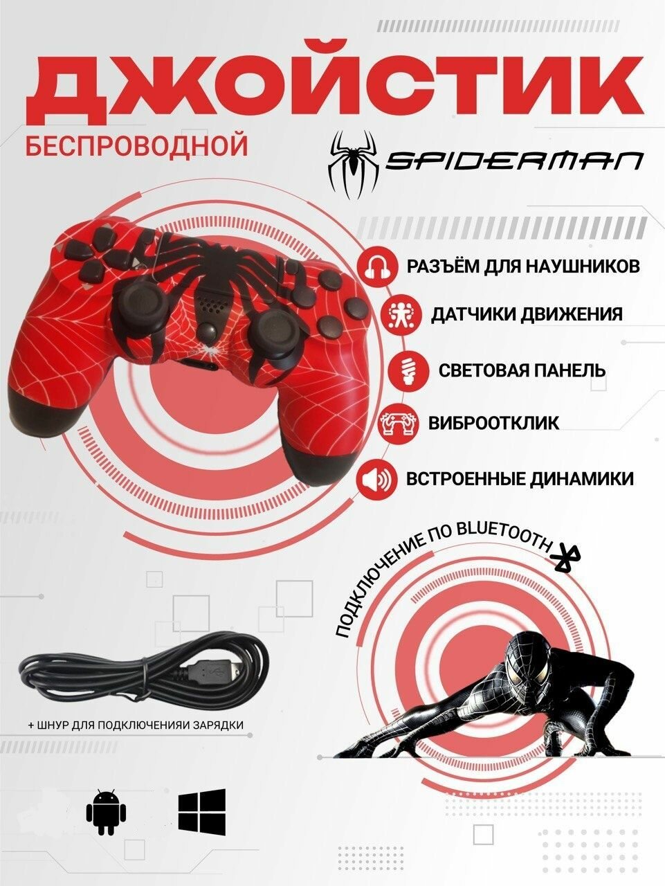СохранитьБеспроводной геймпад джойстик для игровой приставки, смартфона, ПК, Spider Man DARK интересное: