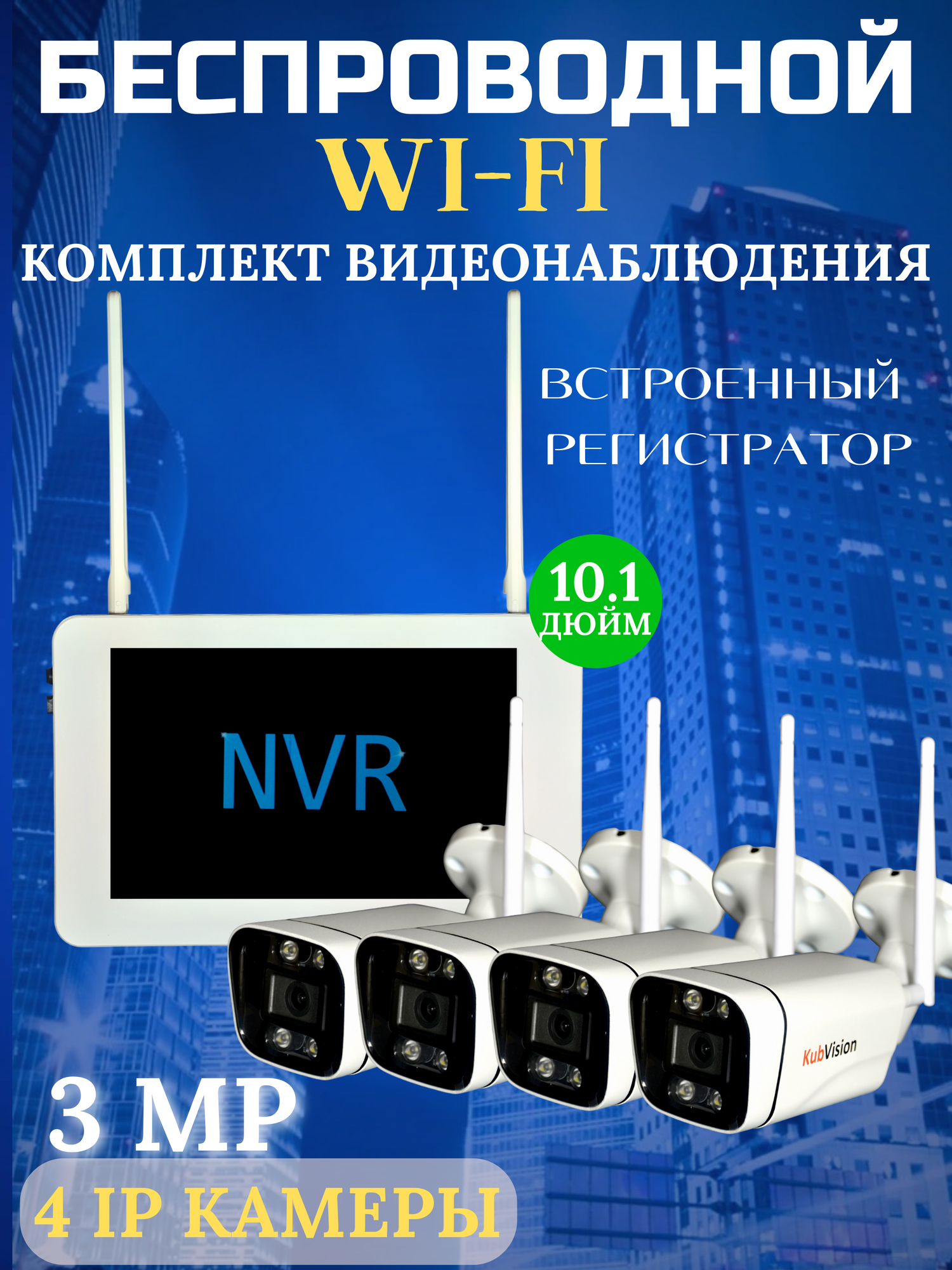 Купить Готовый комплект видеонаблюдения на 4 ip камеры, беспроводной, 3 МП, с монитором
