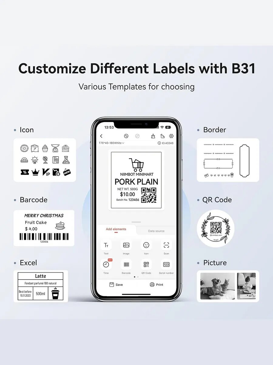 СохранитьПринтер этикеток штрих-кода термопринтер Niimbot B31, bluetooth, синий интересное: