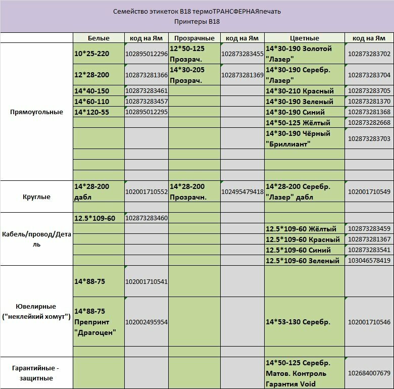 | Комплектация | - принтер - ЭТИКЕТКИ 14х50 БЕЛЫЕ прямоугольные. - красящая лента (риббон) черный картридж - инструкция - кабель |