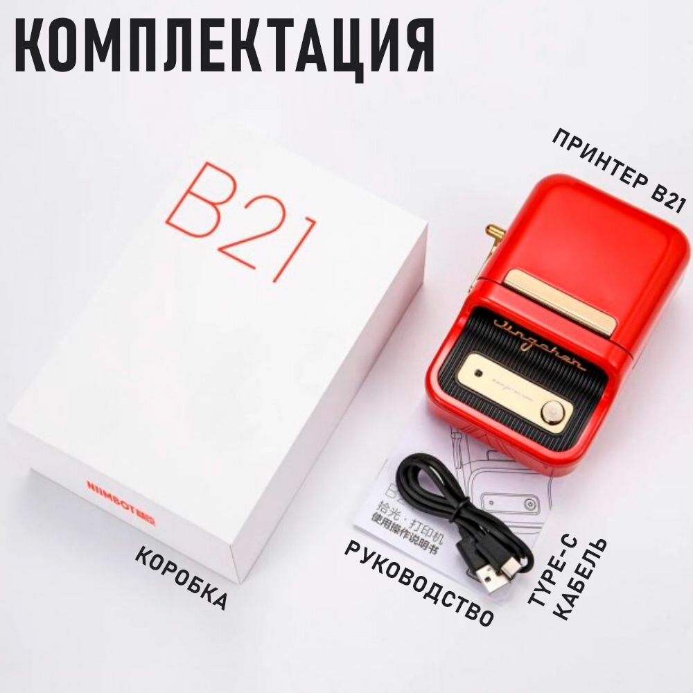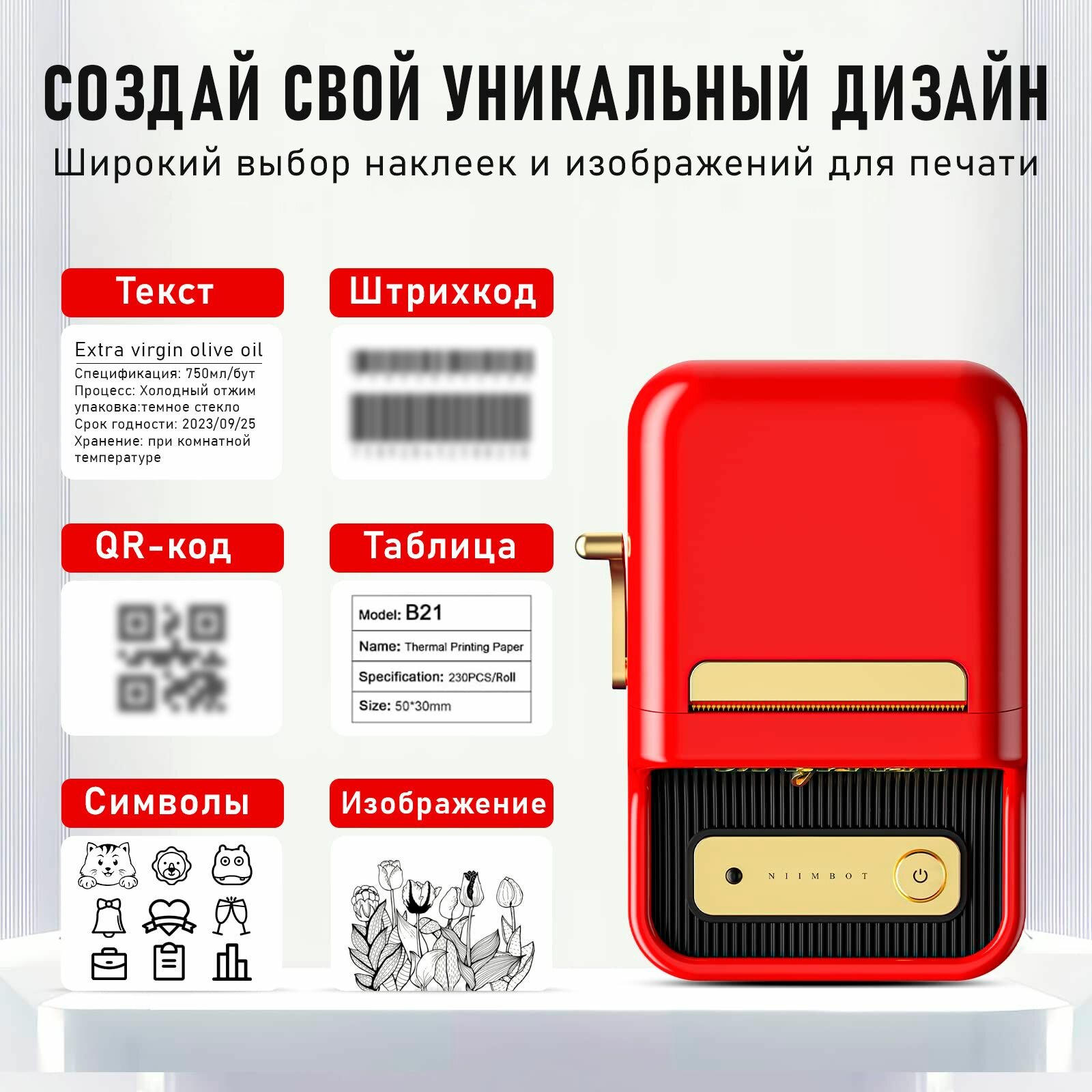 Портативный принтер стикеров, наклеек, этикеток NIIMBOT B21S Red интересное: