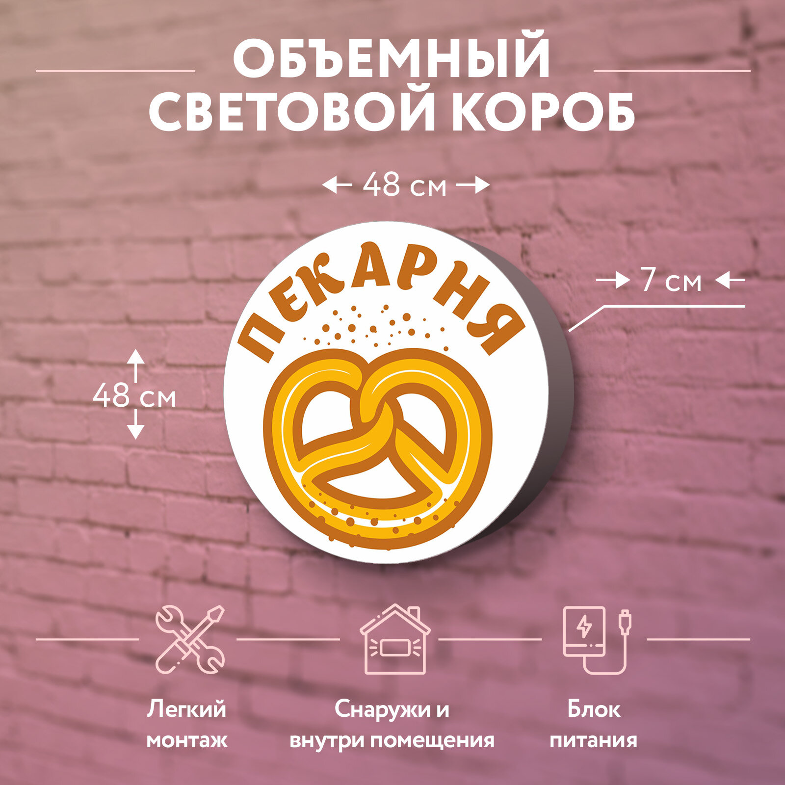 Купить Световая вывеска "Пекарня" Объемный короб с подсветкой Лайтбокс круглый