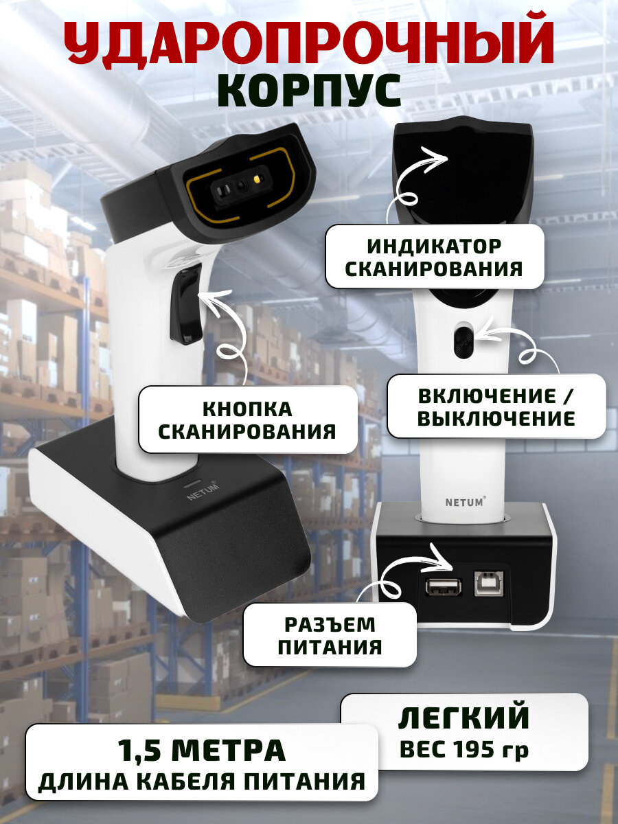 СохранитьСканер штрих-кодов 2D беспроводной Netum DS7500 белый с док станцией интересное: