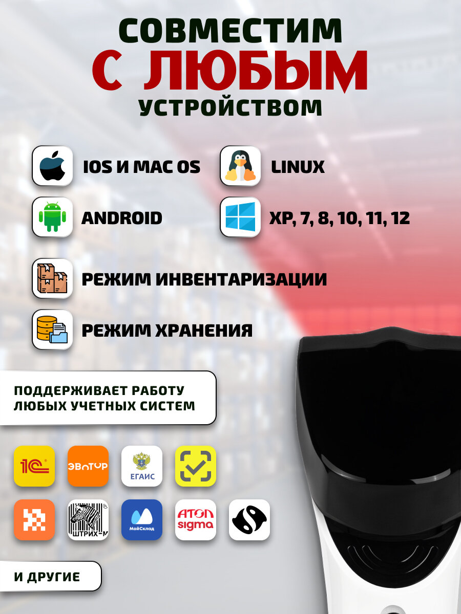Проводной сканер штрих-кодов 1D/2D USB для пвз, ЕГАИС, Честный знак, QR, 1C, Frontol, Атол, Меркурий, Эвотор и др
