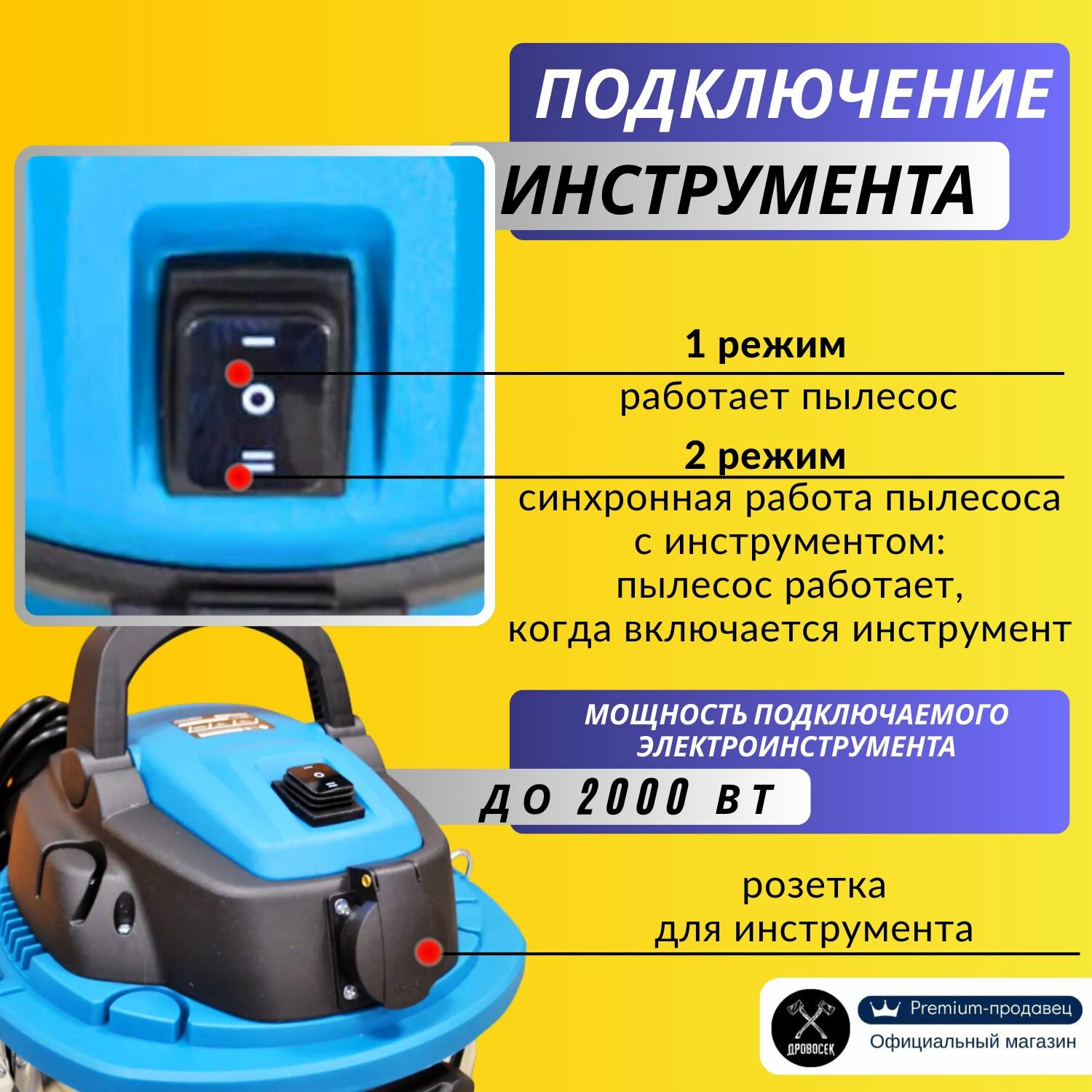 Пылесос строительный Варяг ПУ-31М с розеткой (1500 Вт, 30 л, металл) промышленный для электроинструмента технический, подарок мужчине интересное: