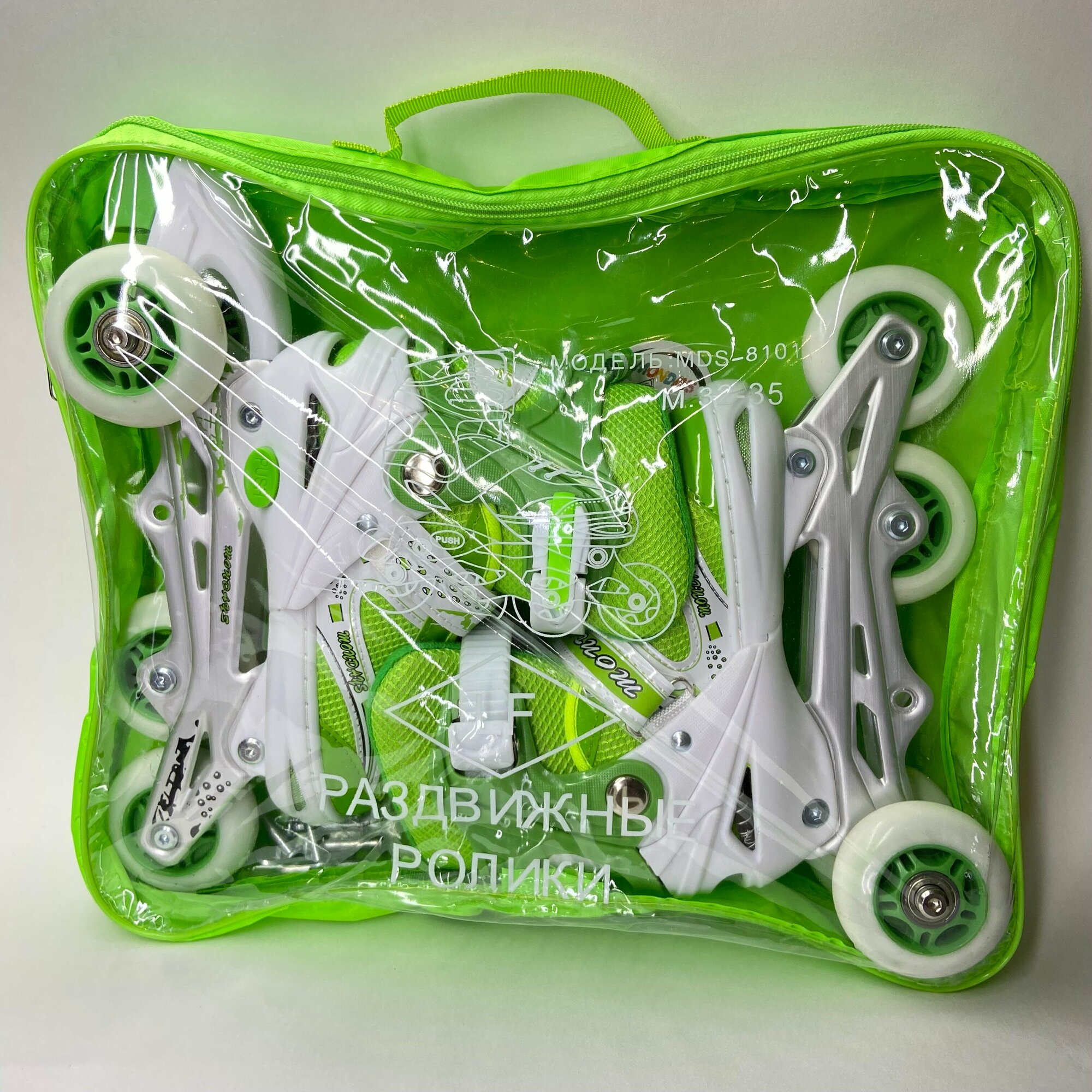 Купить Роликовые коньки, раздвижные р-р 32-35, (зеленый, светящиеся колеса)