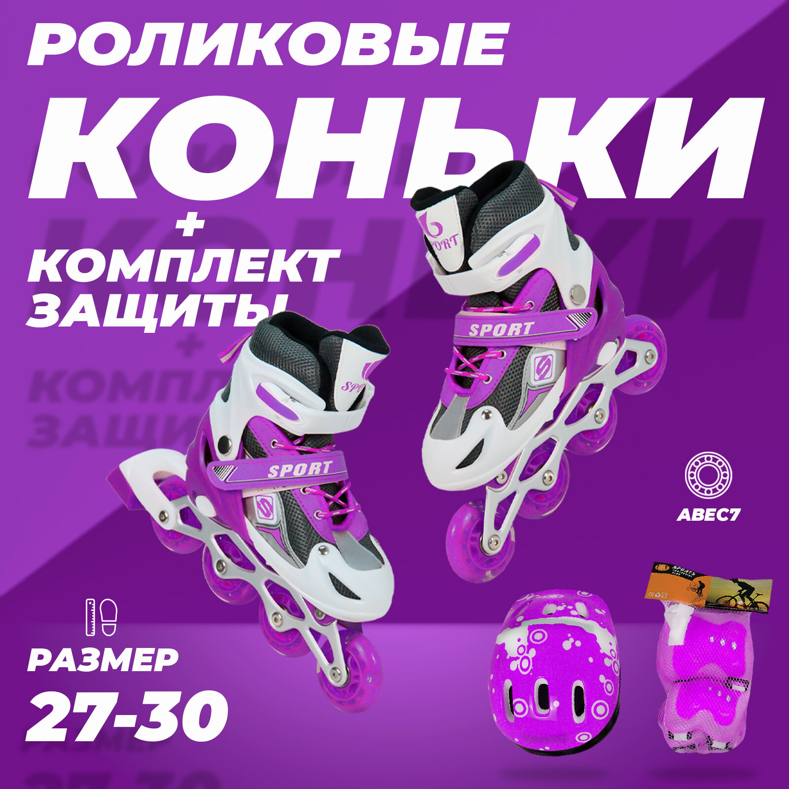 Роликовые коньки раздвижные 27-30, защитный набор в комплекте, ABEC7, фиолетовые