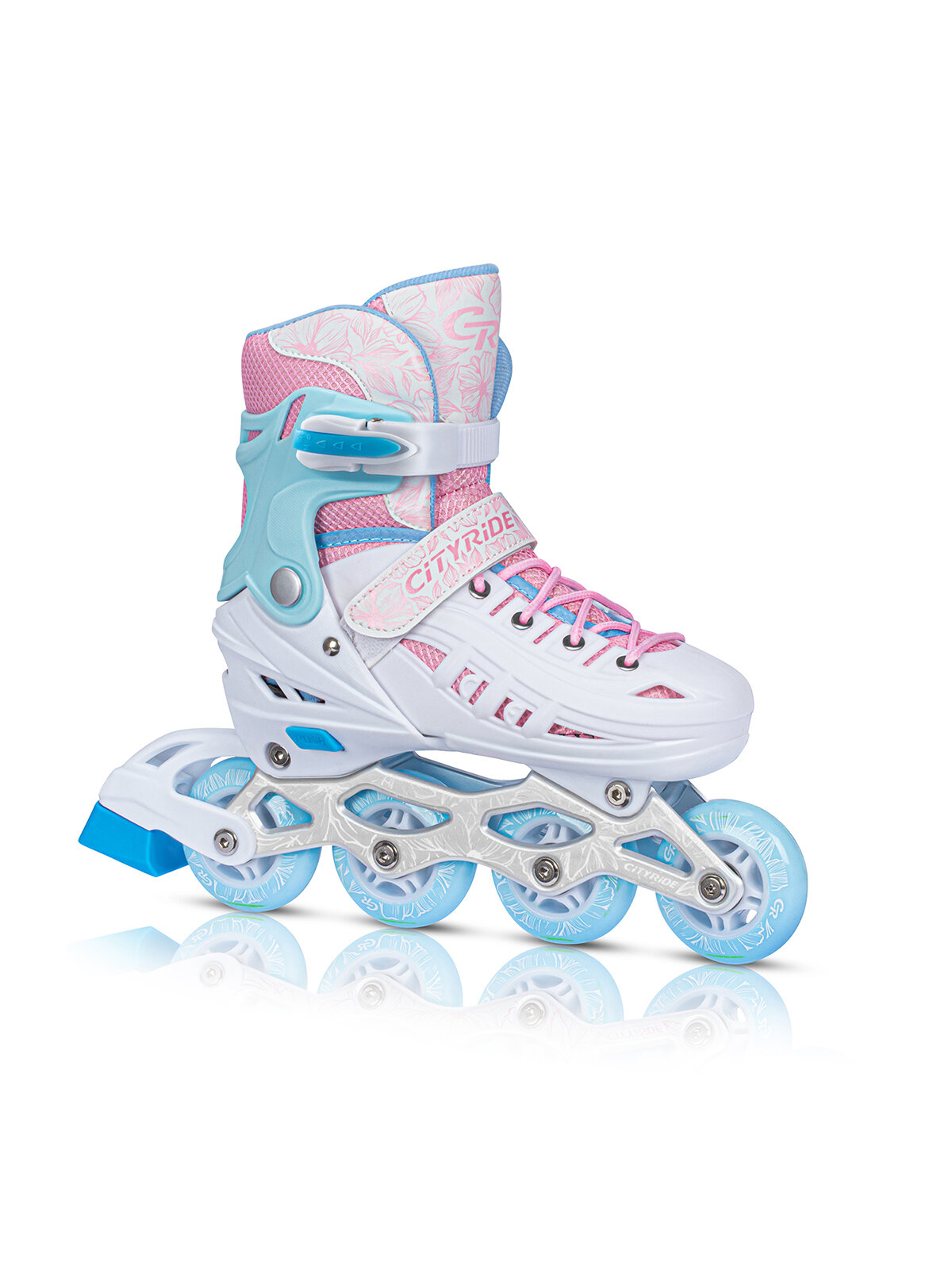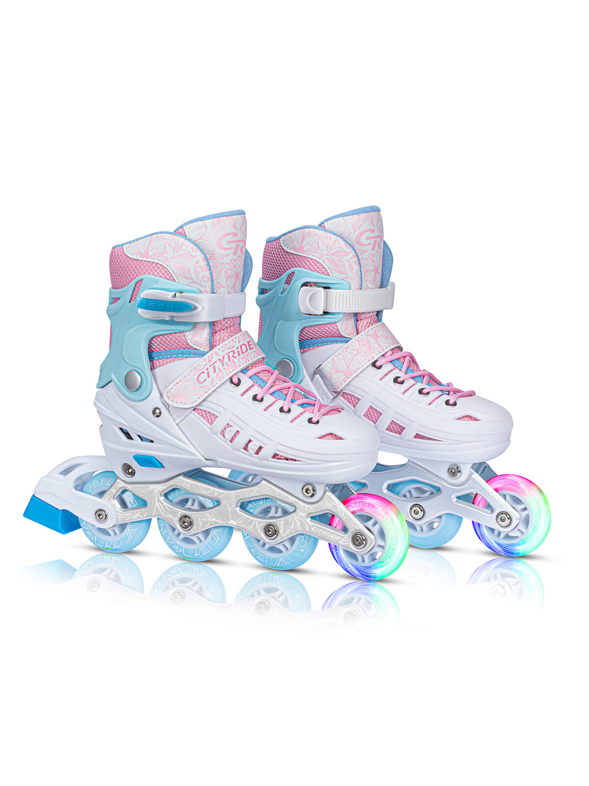 Роликовые коньки CITYRIDE JB8800095, (S), белый-розовый, PU колеса, переднее колесо со светом, подши