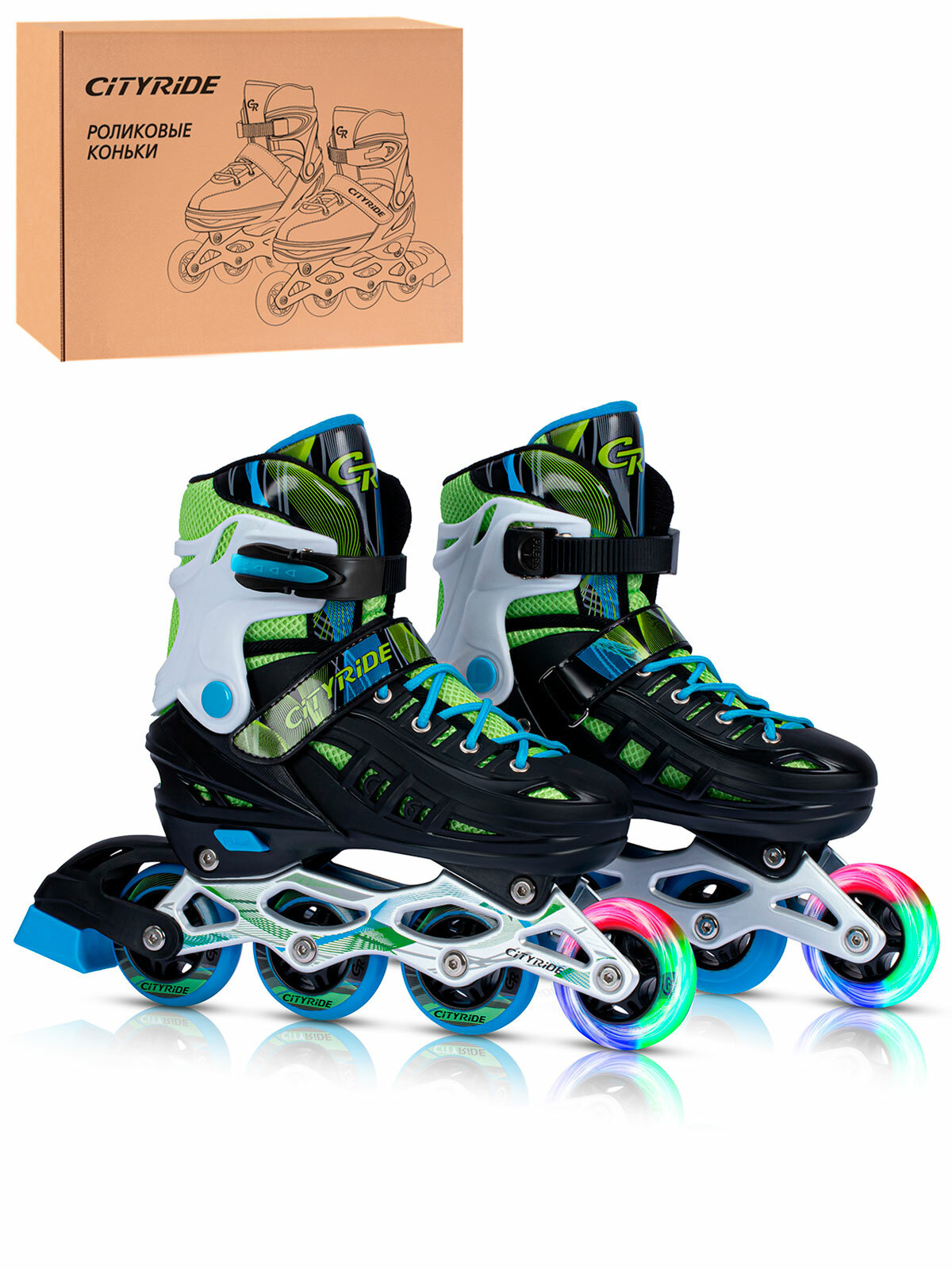 Роликовые коньки детские CITYRIDE, PU колеса/первое светится, ABEC 7, размер L (39-42), раздвижные, JB8800084/L(39-42)