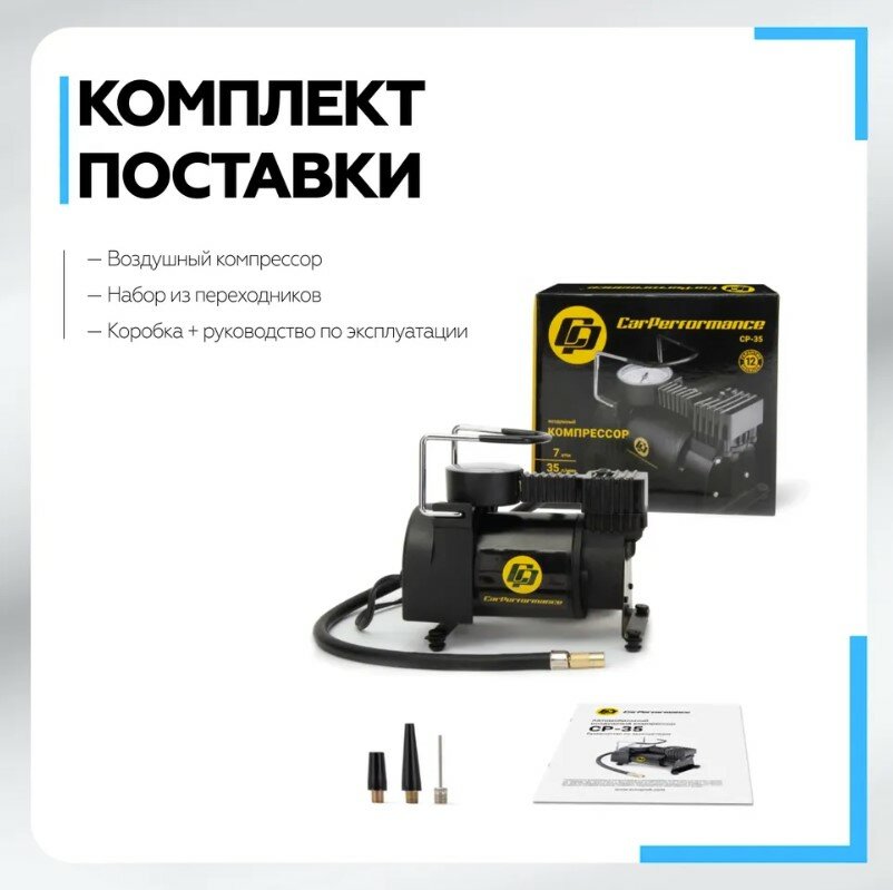 Компрессор воздушный CarPerformance, 25 л./мин, 12V/9A, 80W, 7 Атм интересное:
