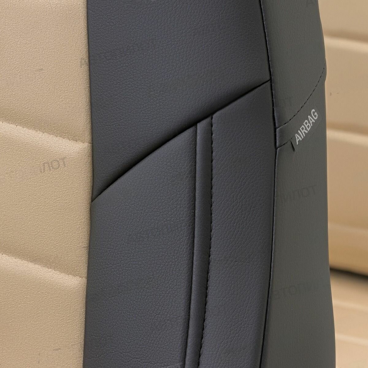 Комплект чехлов Автопилот Экокожа Toyota Land Cruiser Prado 150 рестайлинг 2 с 17г. Черный + Темно-бежевый