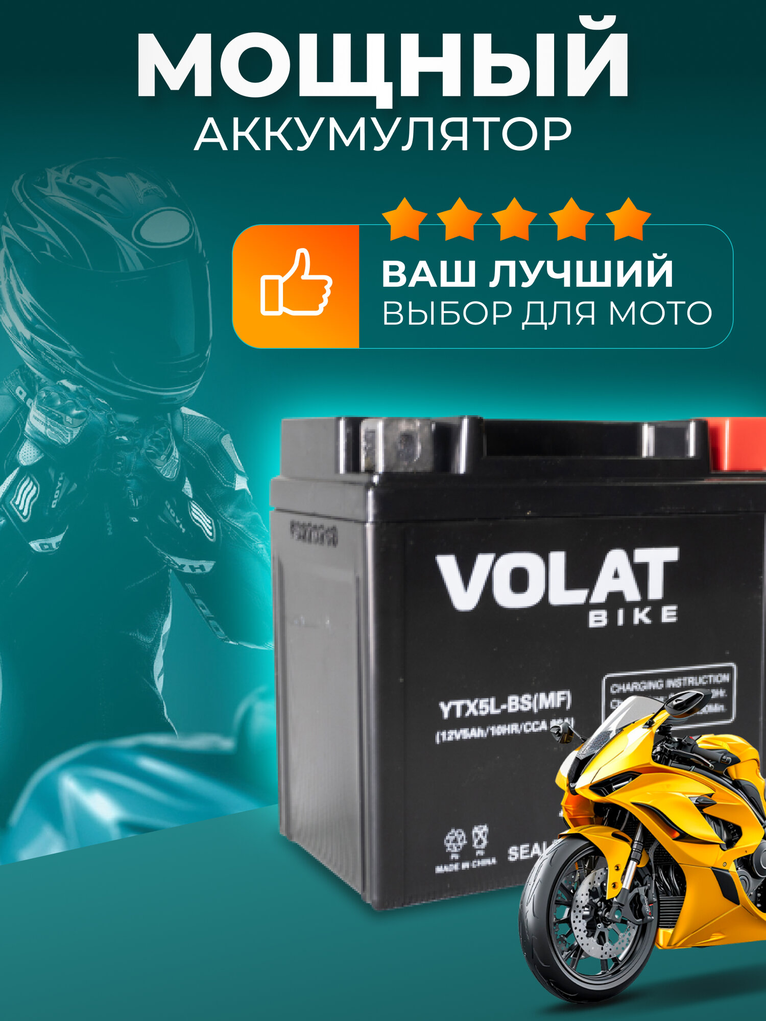 Ниже Вы можете прочитать отзывы на Аккумулятор для мотоцикла 12v Volat YTX5L-BS(MF) обратная полярность 5 Ah 80 A AGM, акб на скутер, мопед, квадроцикл, мотоцикл, ознакомится с подробными характеристиками, посмотреть интересные обзоры и фотографии на Аккумулятор для мотоцикла 12v Volat YTX5L-BS(MF) обратная полярность 5 Ah 80 A AGM, акб на скутер, мопед, квадроцикл, мотоцикл.