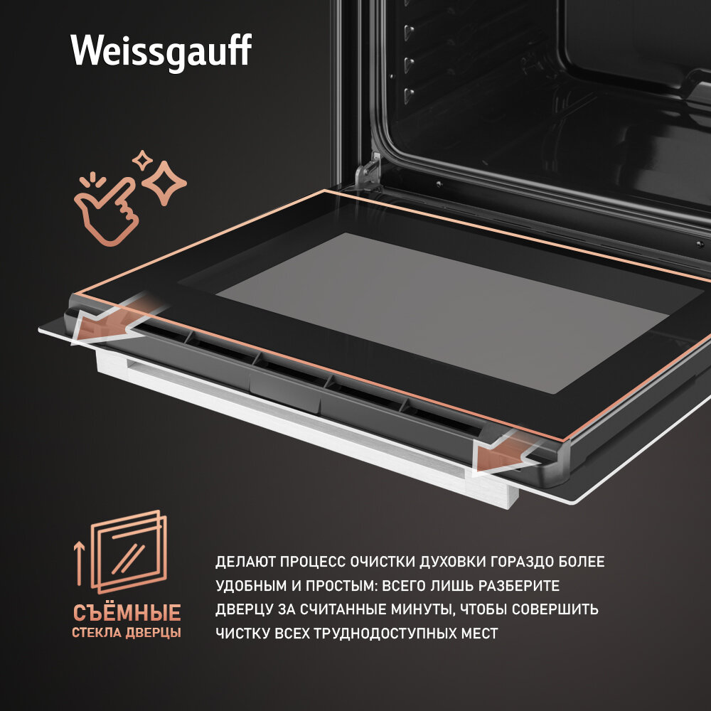 Духовой шкаф Weissgauff EOM 691 PDW, Объем XL 60 литров, Тройное стекло дверцы, Класс энергопотребления А