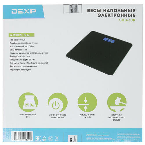 Весы DEXP SCB-30P, электронные, точность 50г, максимальная нагрузка 250кг, автоматические интересное: